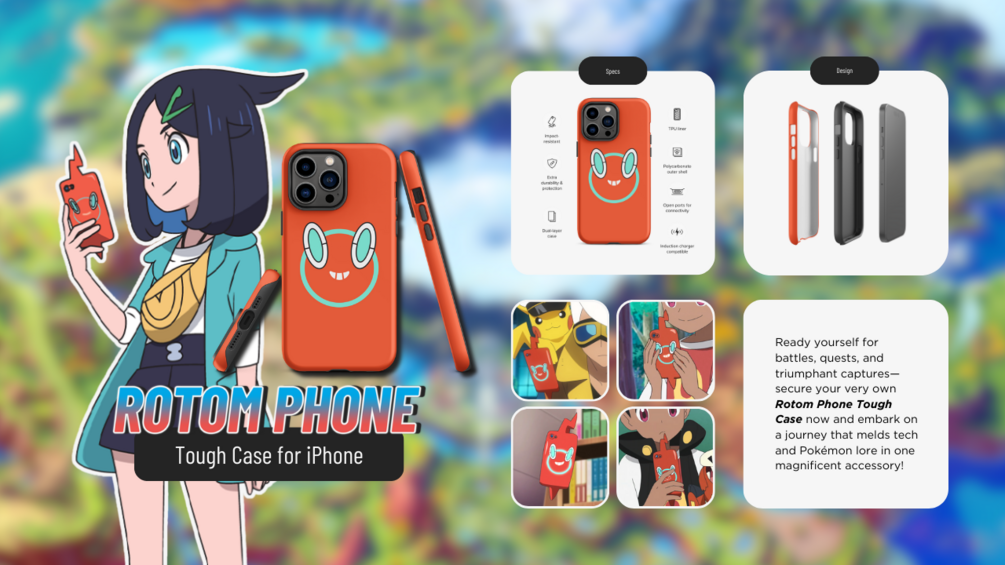 Ready yourself for battles, quests, and triumphant captures – secure your very own Rotom Phone Tough Case now and embark on a journey that melds technology and Pokémon lore in one magnificent accessory!